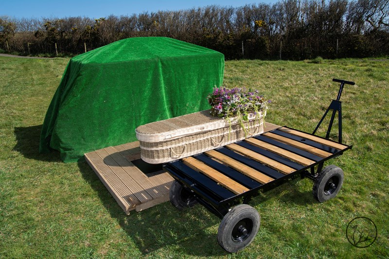 We use a recently refurbished trolley bier to convey our residents on their last journey – as shown in the photograph. Families are still welcome to carry their loved ones to the graveside if they wish too.